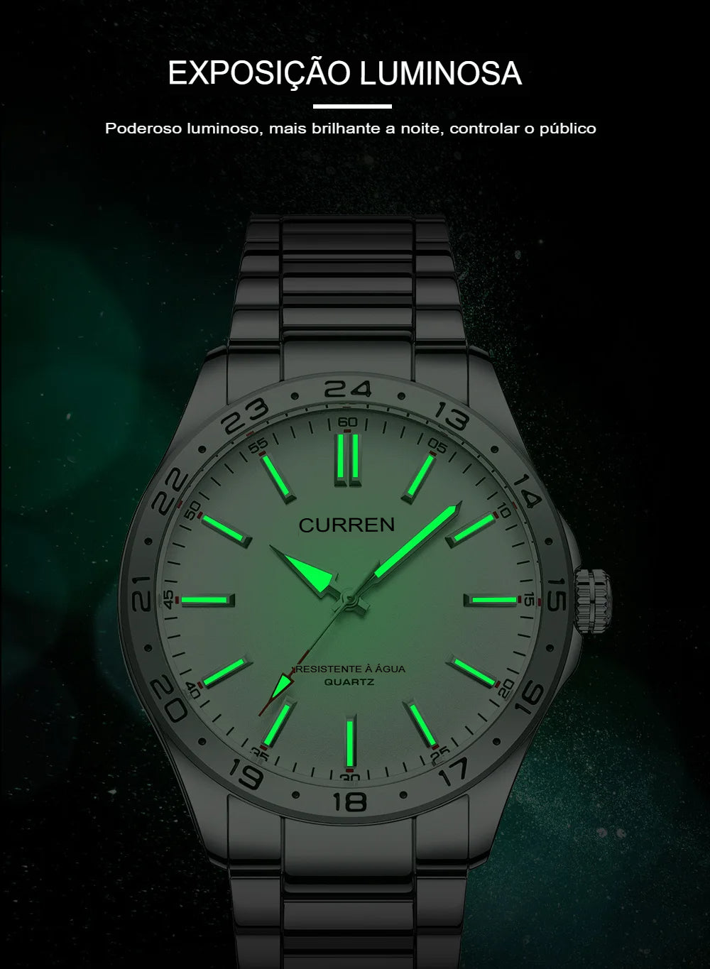 DESCRIÇÃO: Relógio Masculino Quartzo com brilho noturno, resistente à água e alta durabilidade em aço inoxidável. Sofisticação que acompanha seu ritmo.