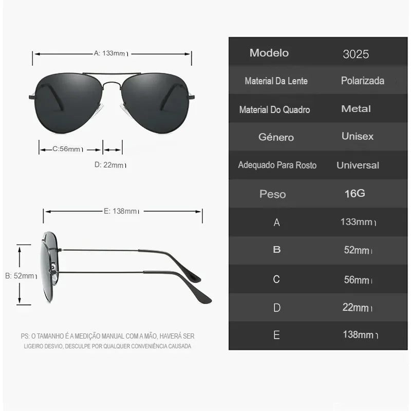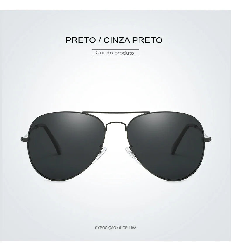 DESCRIÇÃO: Óculos de Sol Masculino Classic: elegante, clássico e de alta qualidade, com lentes polarizadas para sofisticação e conforto diário.